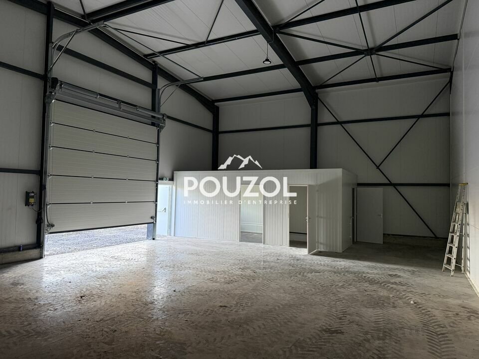 POUZOL IMMOBILIER vous propose à la location un entrepôt neuf de 150 m², comprenant un bureau aménagé et un sanitaire.